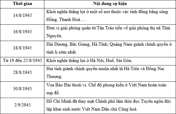Câu 24: Nội dung nào sau đây không phải là điều kiện thuận lợi cho cuộc Tổng khởi nghĩa tháng Tám năm 1945 ở Việt Nam nổ ra và thắng lợi?