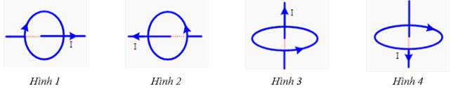 Câu 7: Trong các hình vẽ ở các hình bên dưới: Đường thẳng biểu diễn dòng điện không đổi I, đường tròn trong mặt phẳng vuông góc với đường thẳng biểu diễn một đường sức của từ trường do dòng điện trong dây dẫn gây ra. Hình vẽ nào mô tả không đúng quan hệ giữa chiều dòng điện và chiều của đường sức từ?