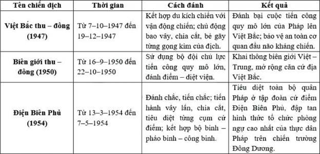 Các chiến dịch quân sự của quân dân Việt Nam trong cuộc kháng chiến chống Pháp (1946-1954) phát huy thế trận chiến tranh nhân dân, chủ động làm thất bại các kế hoạch quân sự của địch.
