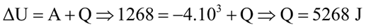 Câu 6: Một lượng khí trong một xilanh hình trụ bị nung nóng, khí nở ra đẩy pit-tông lên làm thể tích tăng thêm và nội năng tăng thêm 1268 J. Biết áp suất của khối khí là và không đổi trong quá trình giãn nở. Nhiệt lượng đã truyền cho khí bằng bao nhiêu J (viết kết quả đến chữ số hàng đơn vị)?