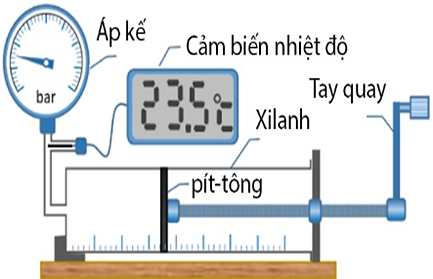 Câu 4. Trong thí nghiệm khảo sát mối liên hệ giữa áp suất và thể tích của một khối khí xác định khi nhiệt độ không đổi, người ta bố trí thí nghiệm như hình bên dưới.