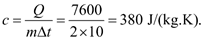 A. 380 J/(kg.K). B. 760 J/(kg.K).