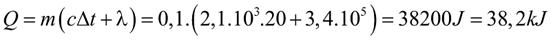 Câu 5: Biết nhiệt nóng chảy riêng của nước đá là 3,4. 105 J/kg và nhiệt dung riêng của nước đá là 2, 1.103 J/kg.K. Nhiệt lượng cần cung cấp để làm nóng chảy 100 gam nước đá ở −20∘C là bao nhiêu kJ?
