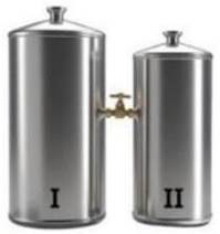 Dùng thông tin sau cho câu 1 và câu 2: Hình vẽ bên cho thấy hai cylinder được nối với nhau nhờ một ống hẹp có thể tích rất nhỏ so với thể tích của cylinder, ngăn cách bởi van nhỏ.